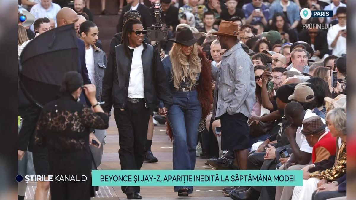 „Spectacol total la Paris, unde Săptămâna Modei a adunat pe covorul roșu zeci de vedete internaționale. Beyonce și Jay-Z au fost în centrul atenției, seara trecută, când și-au făcut apariția la prezentarea de modă organizată de un brand exclusivist. Cei doi soți, care și-au făcut intrarea chiar pe podium, au adoptat ținute moderne, dar casual”.