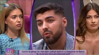 "În afară de asta, ai mai postat un cadru cu noi trei- eu, tu și Ștefania, și comentariul era legat de ce a spus Robi: 'corpul Ștefaniei cu mintea Biancăi'. De ce ai simțit să faci chestia asta pentru că pe mine m-a deranjat?", a întrebat-o Cosmin.