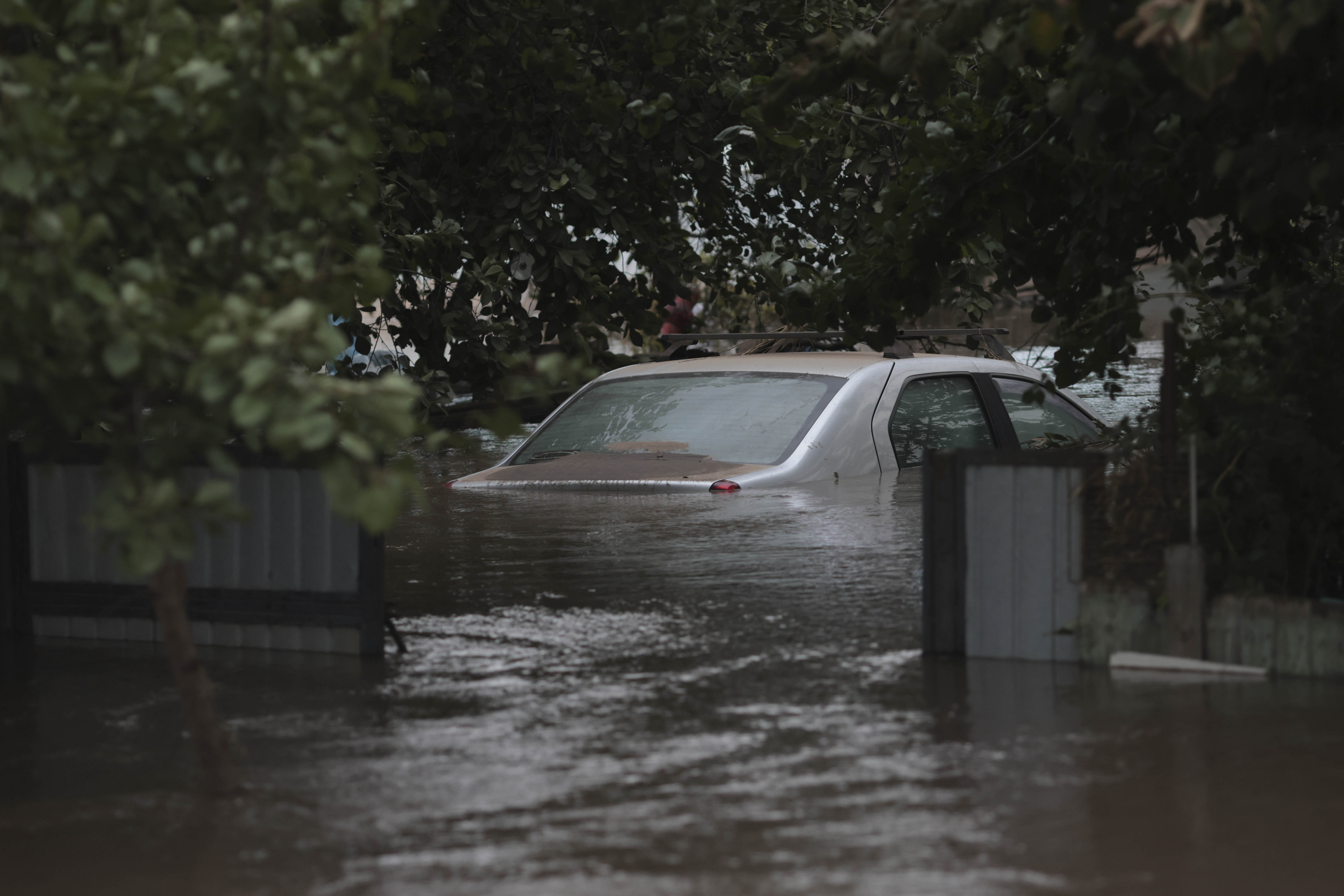 Vedem aici una dintre pagubele făcute de viituri. Mașina, care cel mai probabil nu va mai putea fi salvată, este plină de nămol.