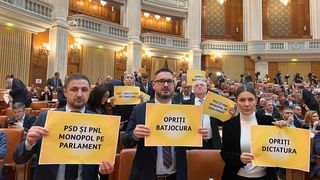 Parlamentarii AUR au protestat, marţi seară, în Parlament, cerând oprirea ”batjocurii” şi acordarea banilor promişi profesorilor.