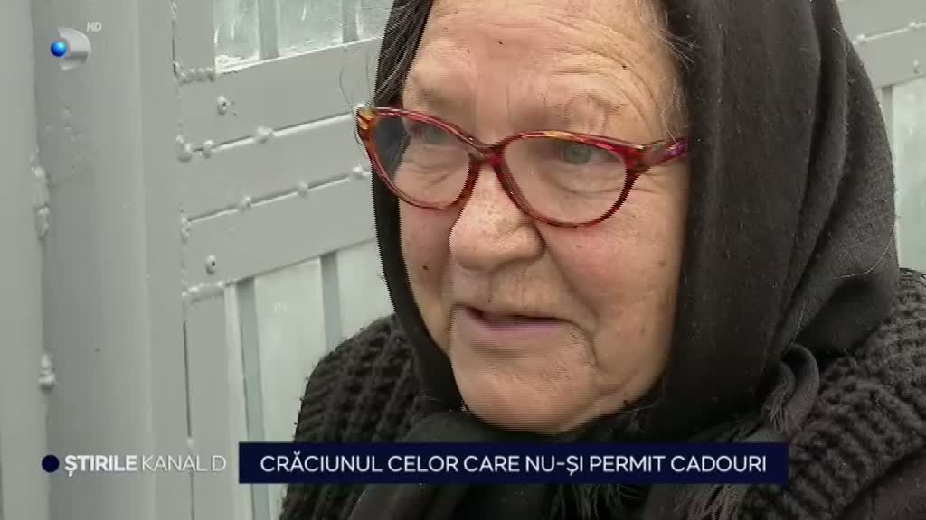 La 77 de ani, o bunică se sprijină cu greu într-un cadru metalic și povestește cum și-a făcut singură un mic cadou de Crăciun: o căciulă tricotată și o pereche de papuci, cumpărate cu 50 de lei, după ce a plătit facturile și medicamentele. „Am dat 50 de lei pe toate. Atât mi-am permis”, spune ea, arătând că bucuriile mici sunt cumpărate cu greu, în avans, la capătul unui an dificil.