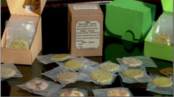„În interior avem meniul vită, 6 tablete sunt vită și alte legume și condimente, două tablete sunt dulciuri, și două tablete sunt cafea, cu și fără cofeină.”