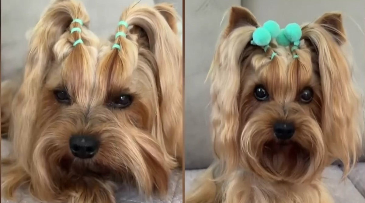 Cățelul are parte de o coafură demnă de saloanele de înfrumusețare pentru animale.