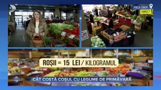 "Au apărut pe tarabe verdețurile și legumele de primăvară. Sunt proaspete și le fură privirile pofticioșilor, dar prețurile nu sunt pentru toate buzunarele. Colega mea Larisa Rațiu e la Piața Obor și ne spune cât costă coșul cu bunătățile de sezon", a transmis Simona Pătruleasa.