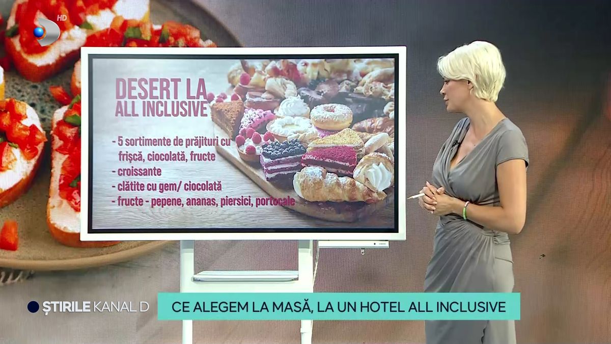 „Fie că merg pe litoral la noi, în Bulgaria sau Grecia, românii aleg tot mai des vacanțele cu mese all-inclusive. Suntem tentați să mâncăm de toate, că tot suntem în concediu. La final, după un astfel de sejur, chiar venim în plus cu câteva kilograme. Ce anume putem mânca fără restricții la all-inclusive, dar și ce combinații să evităm în farfurie, ne spune astăzi nutriționistul Anca Alungulesei”, a spus Cristina Dorobanțu.