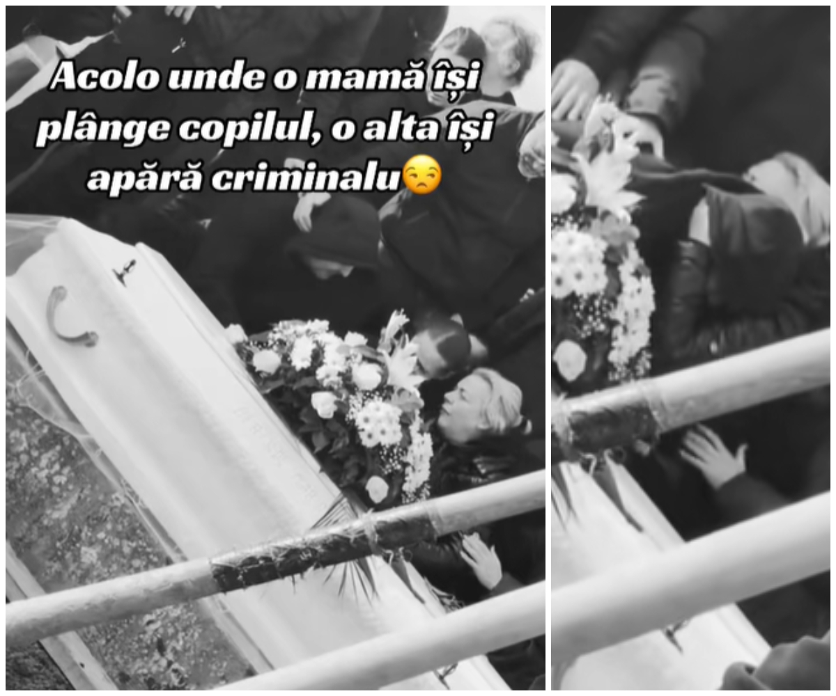 Momentul emoționant a fost publicat pe rețelele sociale alături de mesajul: "Acolo unde o mamă își plânge copilul, o alta își apără criminalul. Drum lin spre îngeri".