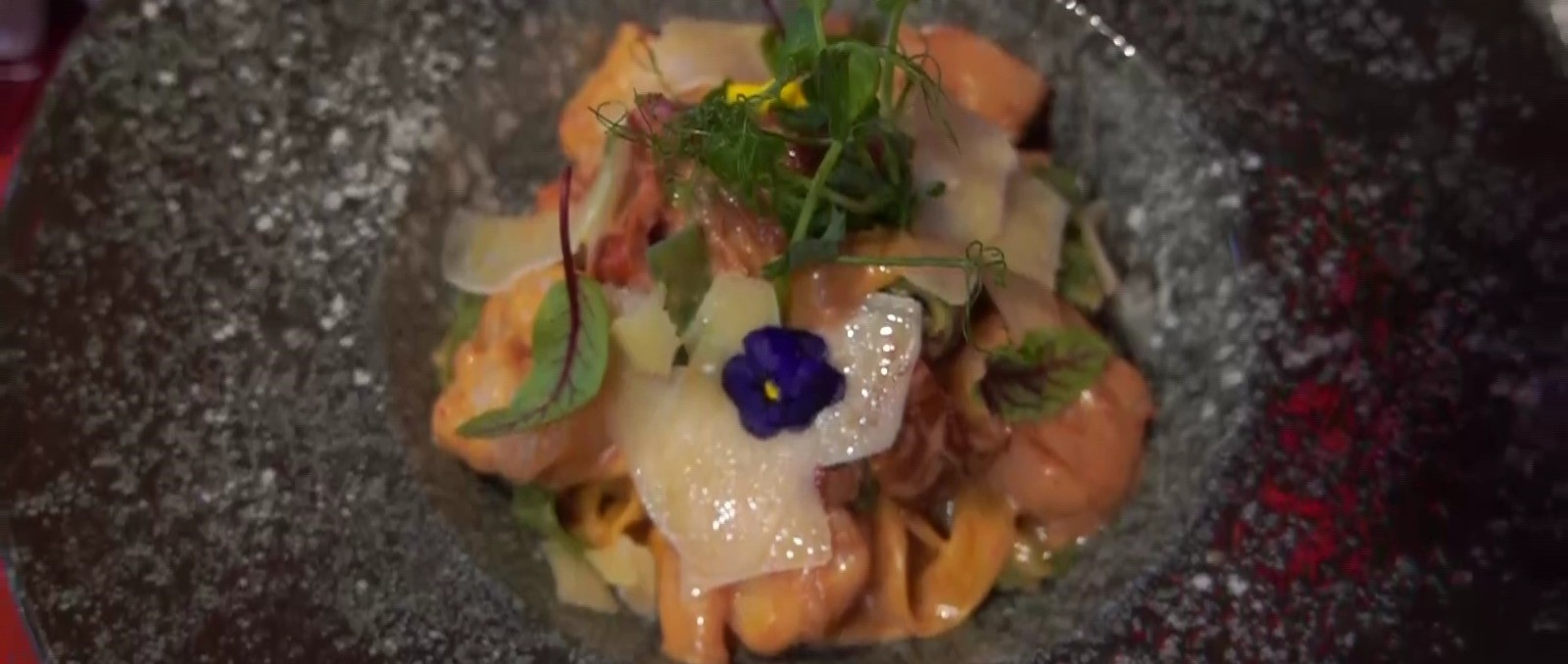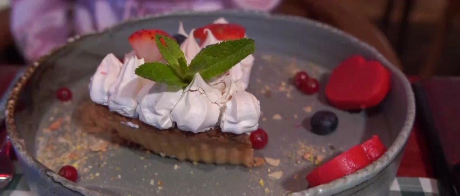 Meniul este completat de desert: tartă de lămâie cu sos de citrice, urmată de un ceremonial cu inele de ciocolată.