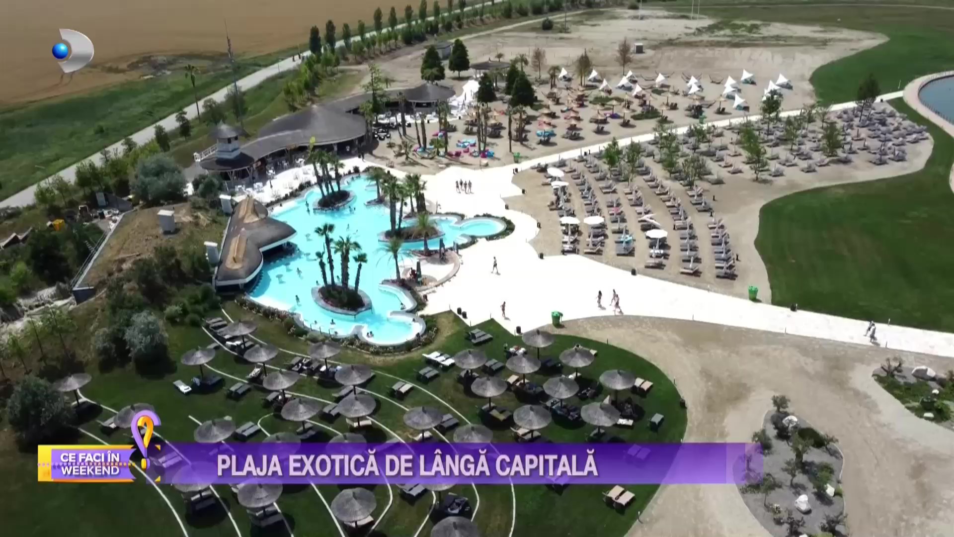 „Bună seara, doamnelor și domnilor! Sunt Claudia Costandiș și în această seară vreau să vă anunț că s-a dat startul sezonului de mers la piscină. Ce activitate poate fi mai plăcută decât relaxatul la soare, pe marginea apei, când afară sunt peste 30 de grade. Haideți cu mine să vedeți ce plajă exotică am descoperit, chiar lângă București”.