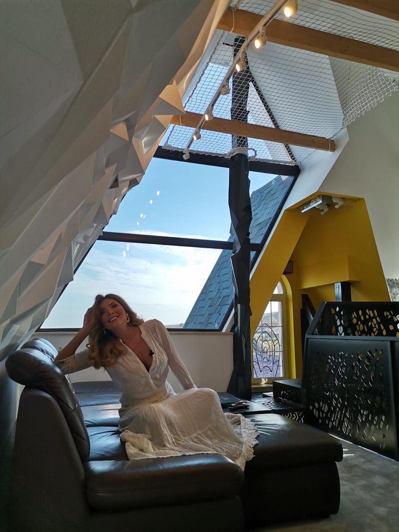 Confortul și decorul camerelor te încântă, iar atmosfera feerică este molipsitoare. Ilinca s-a cazat intr-un apartament de printesa cu un living urias si cu unul dintre dormitoare aflat la etaj- in turnul castelului.