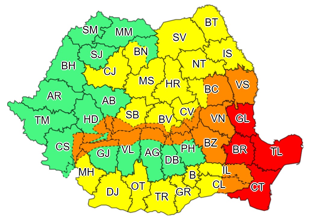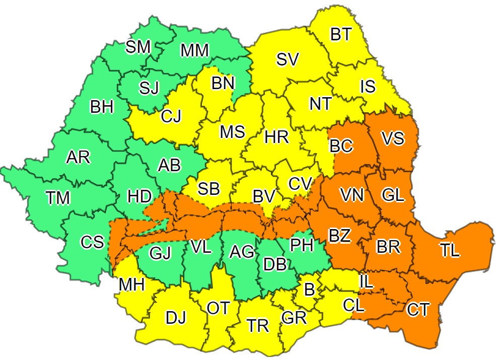3 din 6 | Cod Roșu în mai multe județe din țară