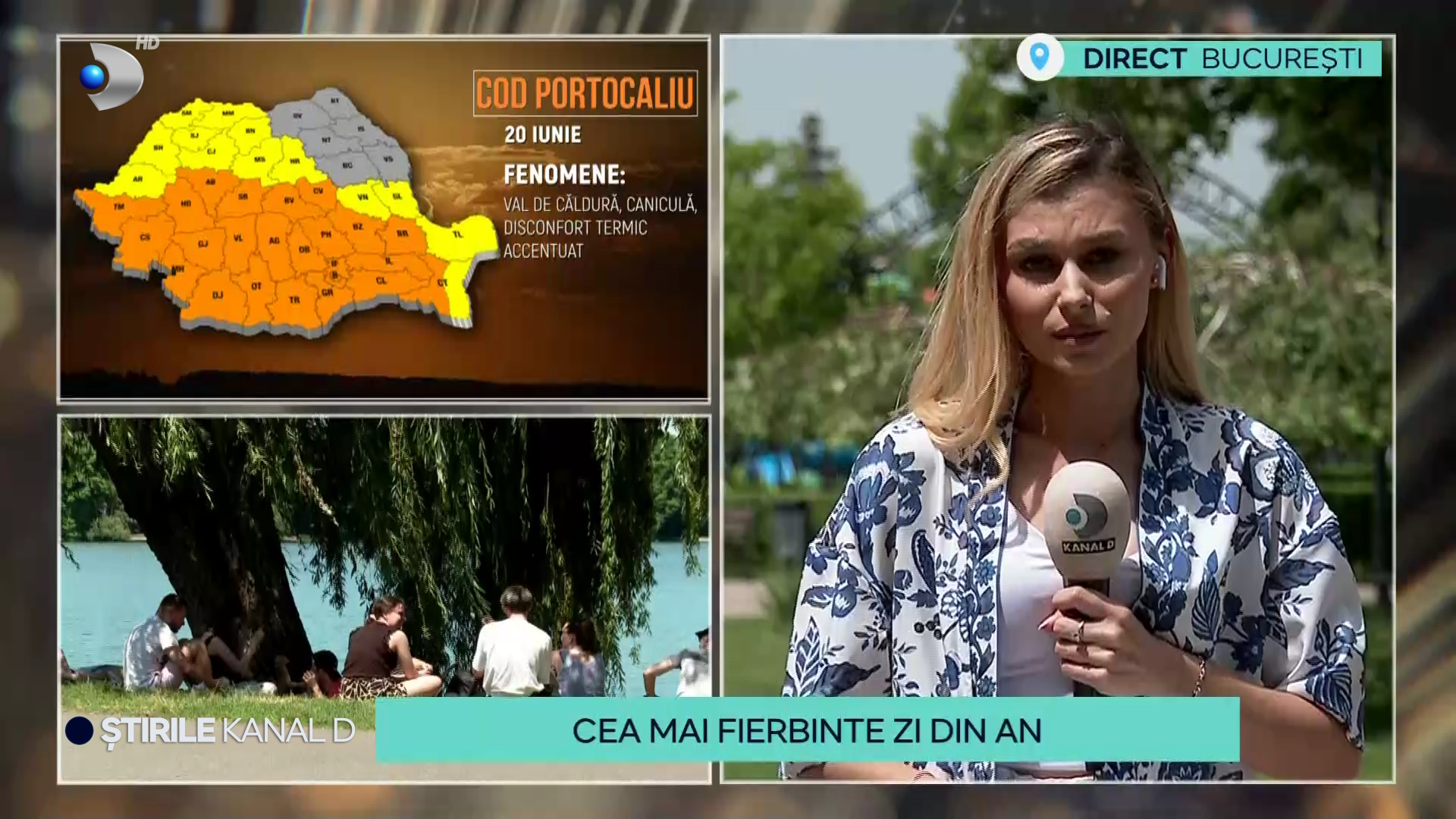 „Românii trec, astăzi, prin infern. Țara noastră traversează cea mai fierbinte zi din acest an, cu temperaturi resimțite de până la 45 de grade. Un adevărat coșmar termic pe care cu greu îl putem suporta. Colega mea, Alexandra Cosman, a ieșit în stradă și ne împărtășește impresiile... „la cald”. Bună ziua, Alexandra! Se poate respira?”, a spus Cristina Dorobanțu.