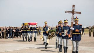 O ceremonie emoționantă a avut loc la Baza 90 Transport Aerian din Otopeni. La ceremonie au luat parte, pe lângă rudele celor doi eroi, ministrul Apărării, Gabriel Leș, și cel de Externe, Ramona Mănescu.