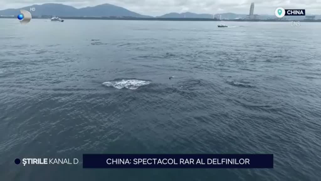 Zeci de delfini au făcut un spectacol rar în sudul Chinei. Au sărit și s-au luat la întrecere în apele mării, apoi s-au apropiat de țări.