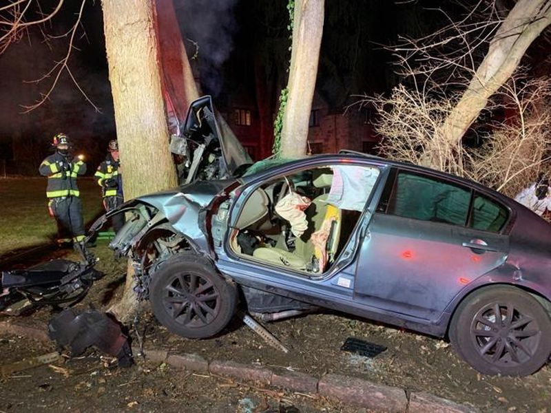 Poliția crede că vehiculul de teren era condus de un băiat de 16 ani când a virat imprudent de pe o stradă din Scarsdale, New York, a lovit un copac și SUV-ul a luat foc.
