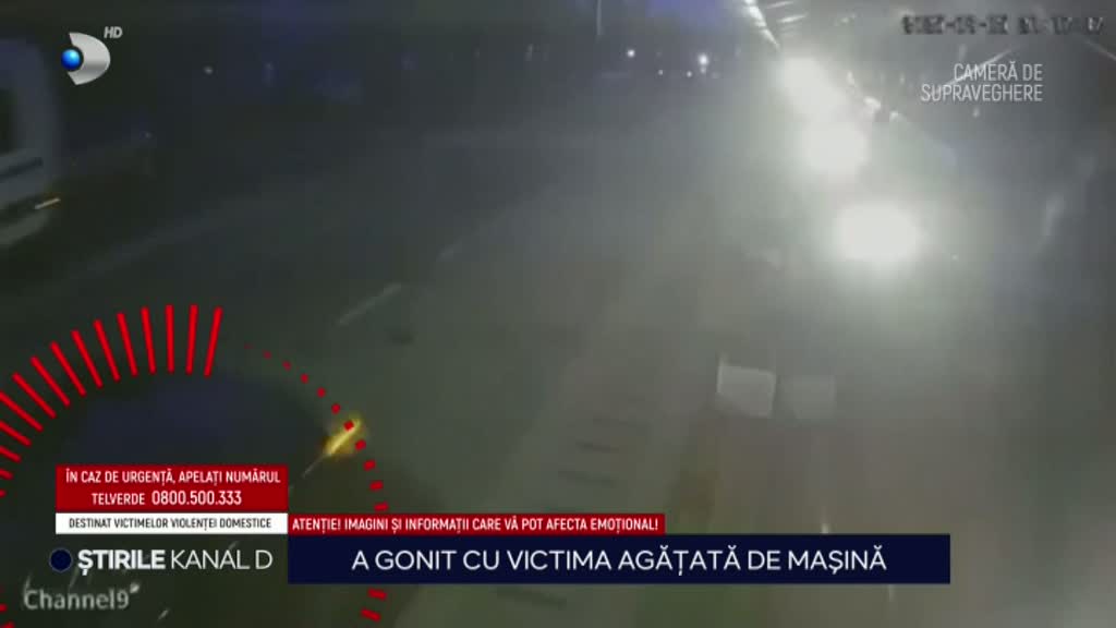 Camerele de supraveghere l-au surprins pe individ gonind, cu victima agățată de autoturism. Aceasta a căzut după mai mulți kilometri și s-a rostogolit într-un șanț de pe marginea drumului. Bărbatul de 35 de ani și-a continuat goana nebună.