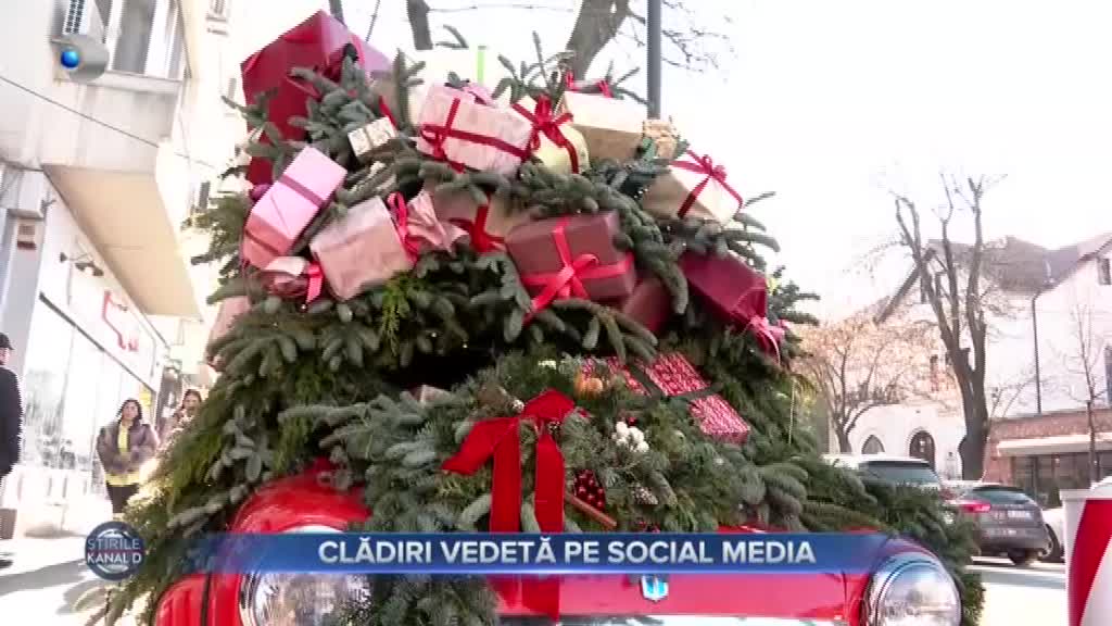 Într-un alt colț de Capitală a prins viață de sărbătoare o altă clădire de poveste. Încă din stradă, oamenii sunt întâmpinați de o mașină plină cu daruri care a făcut furori pe internet.