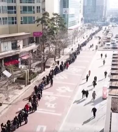 În imaginile filmate cu drona, se observă cum sute de oameni stau la coadă pentru măștile de protecție, relatează ABC News.