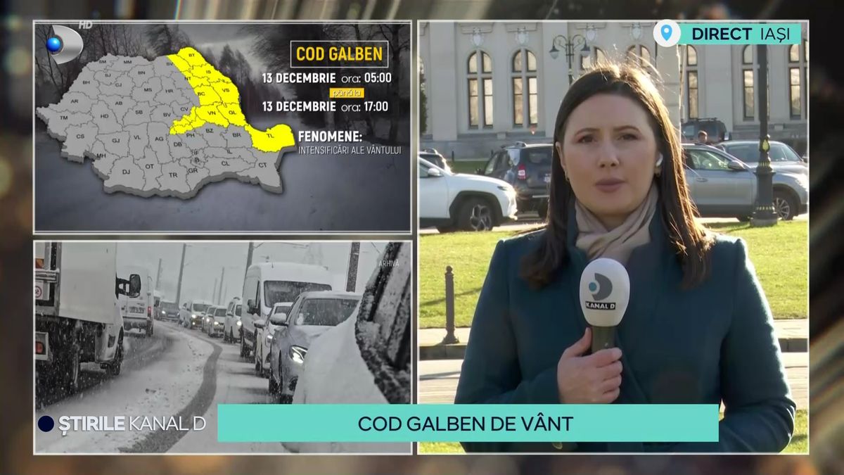 „Mergem acum la Iași, unde este în vigoare un cod galen de vânt ce vizează, de altfel, cea mai mare parte a Moldovei și nordul Dobrogei. Colega mea, Delia Săndulachi, ni se alătură cu detalii”, a spus Cristina Dorobanțu.
