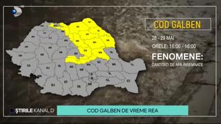 „Ploile pun stăpânire pe mai multe județe din țară. Meteorologii au emis o atenționare cod galben de cantități însemnate de apă, ce vizează cea mai mare parte a Moldovei, estul Transilvaniei, Carpații Orientali și jumătatea de est a Carpaților Meriodinali. În aceste zone vor fi perioade cu averse, iar în intervale scurte de timp, cantitățile de apă acumulate vor fi de 25-30 de litri pe metru pătrat, chiar și de 45 de litri pe metru pătrat pe alocuri. Codul galben intră în vigoare astăzi, la ora 16:00 și este valabil până mâine la aceeași oră”, a transmis Cristina Dorobanțu.