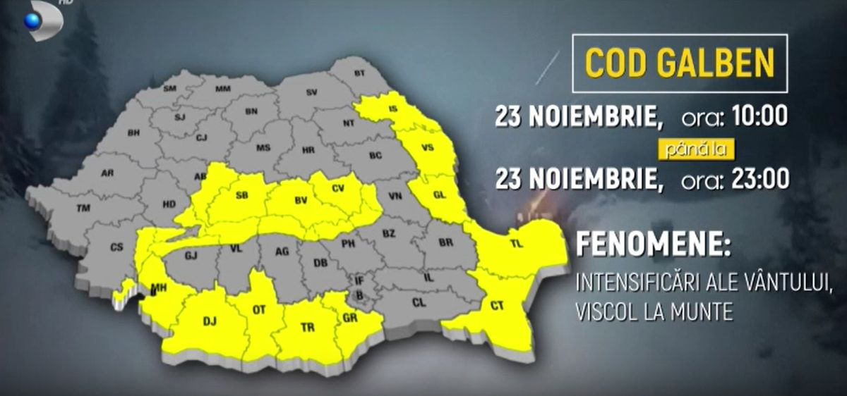 În scurt timp expiră două coduri, dar urgia nu se potolește. De la ora douăzeci, până mâine dimineață la zece, este valabil un alt cod galben de vânt puternic și viscol la munte. După ora zece intră în vigoare un nou cod galben pentru jumătatea de suda țării, care va fi în vigoare până mâine seară, la ora douăzeci și trei.