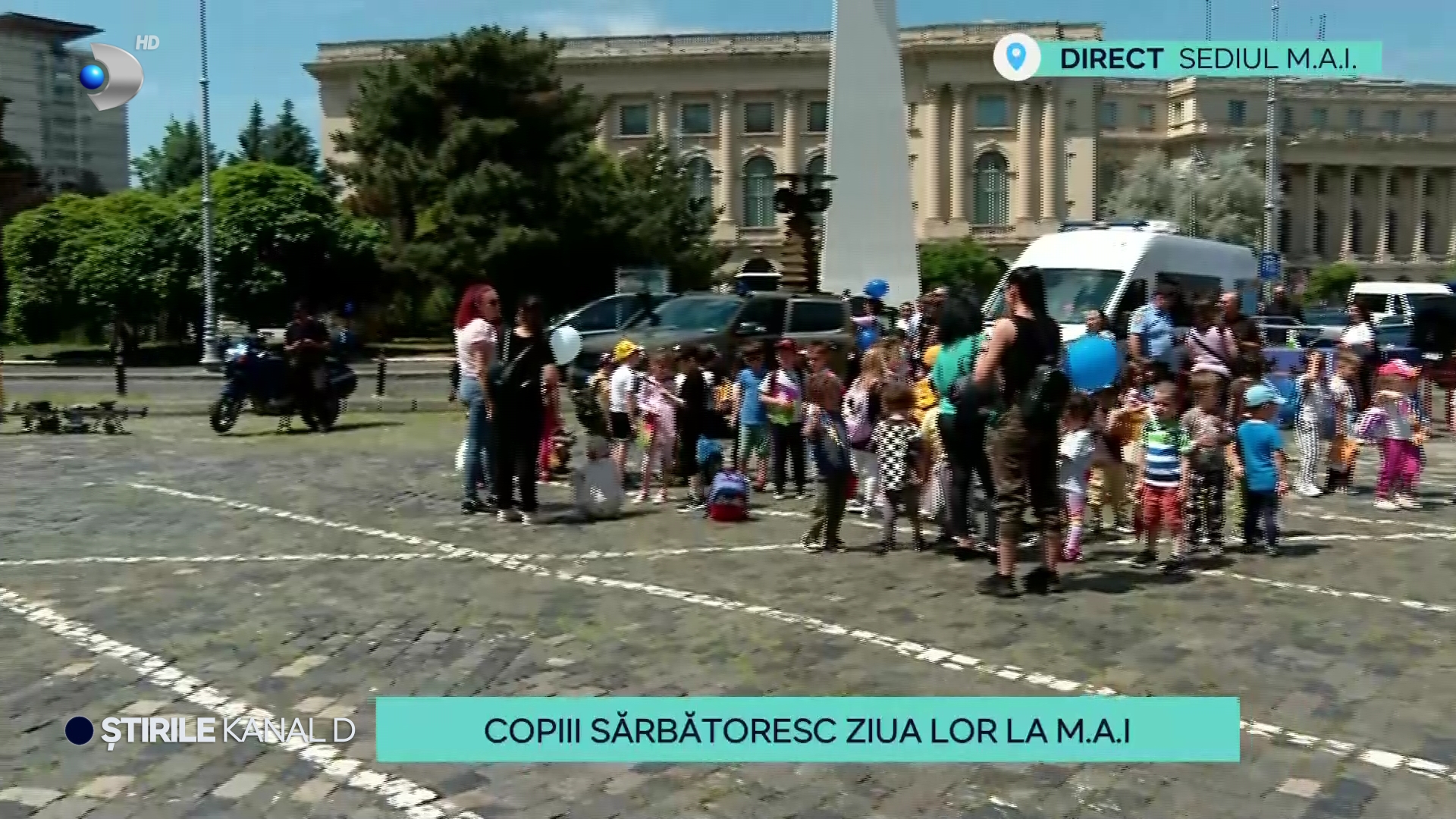 „Mergem acum la sediul M.A.I. din București, acolo unde o mulțime de copii par să își fi stabilit cartierul general de la prima oră a dimineții. Micuții nerăbdători să sărbătorească în avans Ziua Copilului au venit cu mic, cu mare, la Ministerul Afacerilor Interne, unde autoritățile organizează „Ziua Porților Deschise”. Colega mea, Claudia Costandiș, este și ea acolo și este nerăbdătoare să ne povestească ce i-a cucerit pe micuți”, a spus Cristina Dorobanțu.