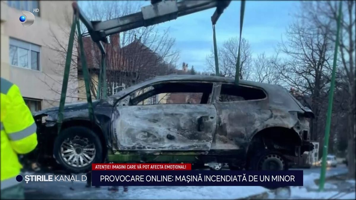 VIDEO „Copilul a fost lăsat prea liber”. Provocare online - mașină incendiată de un minor