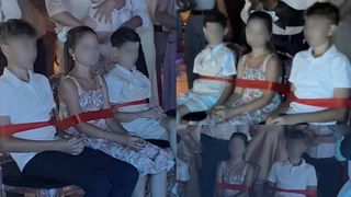 Imagini virale surprind momentul controversat în care mai mulți copii au fost legați de scaune la o nuntă, pentru a nu deranja mirii în timpul primului dans.