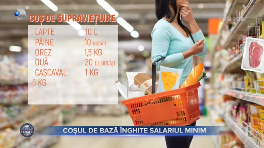 Nici coșul minim, de supraviețuire, nu e un moft. Are 8 tipuri de alimente, de la orez, ouă sau pâine, la carne, fructe și legume. Reprezintă mâncarea de bază sau minimul necesar pentru o lună.