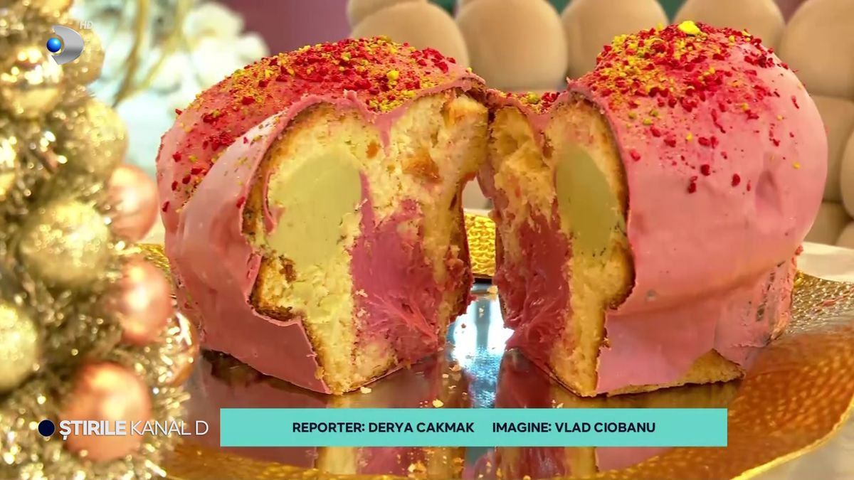 „Sărbătorile se apropie cu pași repezi, iar desertul vedetă al sezonului, cozonacul, ocupă un loc prioritar pe lista pregătirilor. Cumpărat sau făcut în casă, cozonacul trebuie să fie deosebit, dar în același timp să aibă gustul tradițional. Cofetarii vă propun o rețetă inedită: un cozonac cu aluat tradițional, umplut cu căpșune și fistic, îmbrăcat în roz”, a spus Cristina Dorobanțu.
