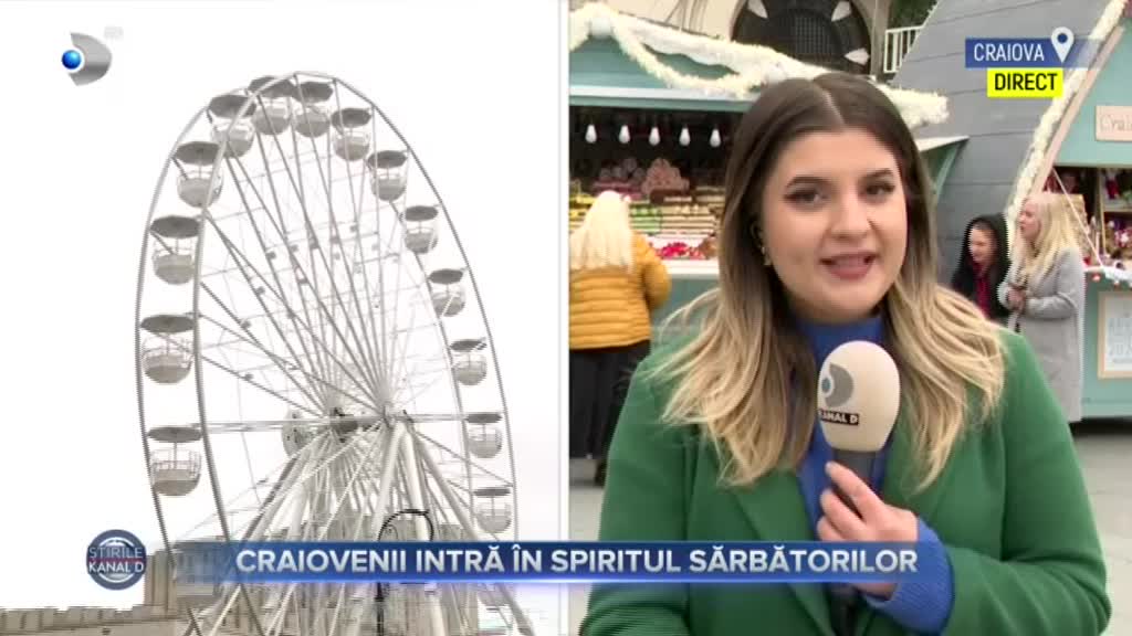 „Au mai rămas doar câteva ore până la deschiderea târgului de Crăciun de la Craiova. Deși suntem abia la mijlocul lunii noiembrie, autoritățile locale și-au dorit să fure startul Sărbătorilor și să aducă bucurie în sufletul oamenilor. Anul acesta, târgul, a cărui tematică este gândită în jurul poveștii Crăiasă Zăpezii, promite surprize în premieră pentru vizitatori. Care sunt acestea și cum arată târgul cu puțin timp înainte de deschidere, ne spune colega mea, Teodora Argint”,