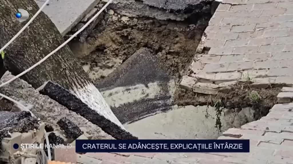 Precum craterul din pământ, misterul străzii surpate de la Slănic Prahova se adâncește. Autoritățile au făcut mai multe măsurători, au ridicat probe, însă rezultatele se lasă așteptate până mâine. Între timp, localnicii sunt îngroziți de pământul care pare în continuă mișcare. Un copac s-a prăbușit, iar un stâlp de electricitate și un brad stau să cadă.