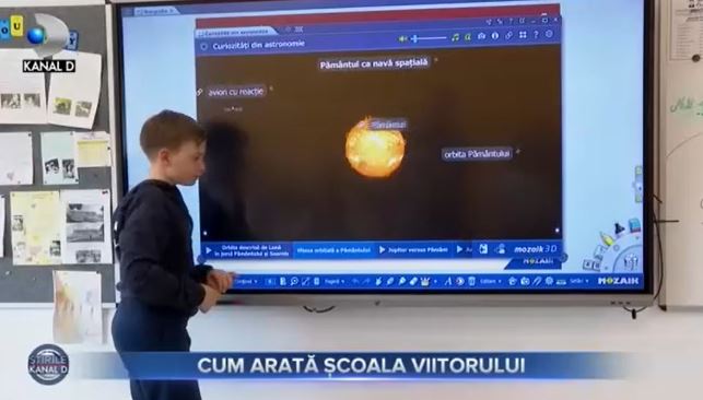 Multibord-ul este prezent în fiecare sală de clasă. Totul este afișat pe tabla digitală: de la exerciții despre Univers, până la ecuații matematice complexe.