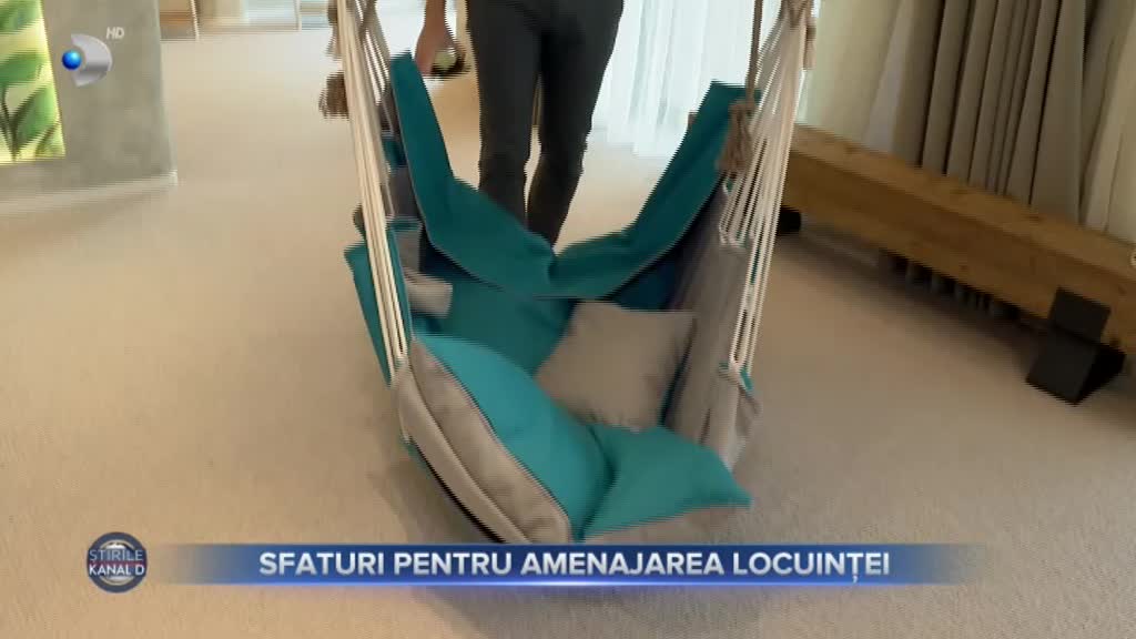 "Am ajuns în tărâmul de joacă... în cadrul amenajării am unit două camere și am creat o sufragerie a copiilor, elementul separator este acest balansoar, este bariera unde se face trecerea pentru zona de noapte", a declarat Sergiu Călifar, arhitect.