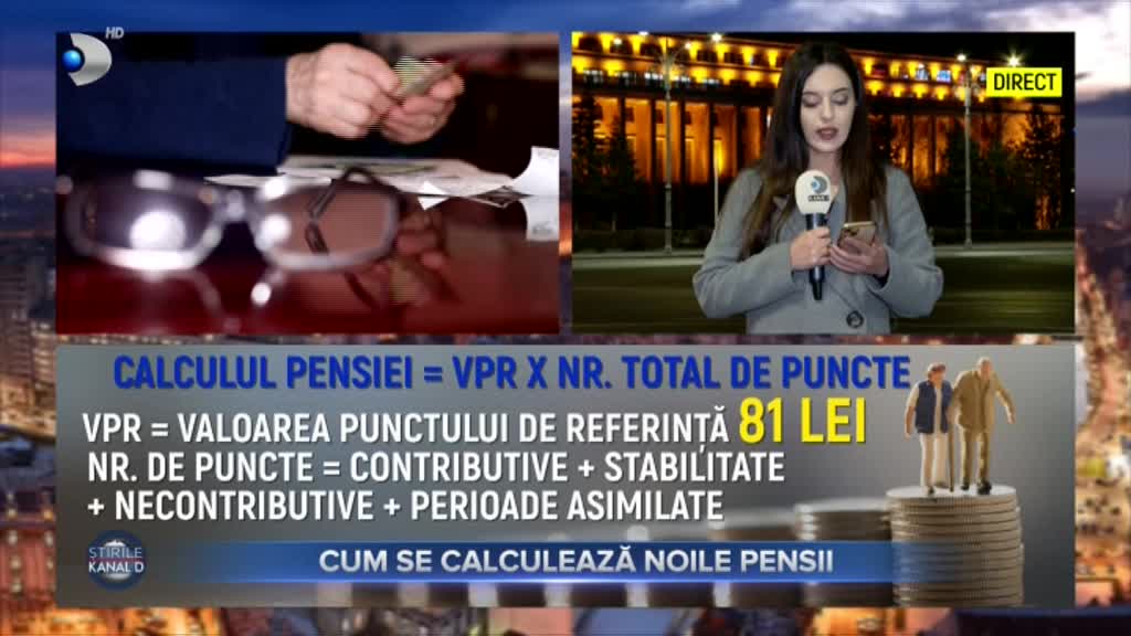 Așadar se vor adăuga și anii din armată, șomaj sau facultate (0,25 puncte de fiecare an), inclusiv orele suplimentare. Spre exemplu, dacă acum o persoană are pe decizia de pensionare 40 de puncte, se vor adaugă și cele pentru perioade asimilitae și de stabilitate, de exemplu pentru armată și facultate, vom avea încă 6,25 puncte. Deci, în total, pensia se va calcula în funcție de valoarea punctului de referință însumat cu 46,25 puncte și ajunge la un total de peste 3700 de lei", a transmis Diana Buzea, reporter Știrile Kanal D.