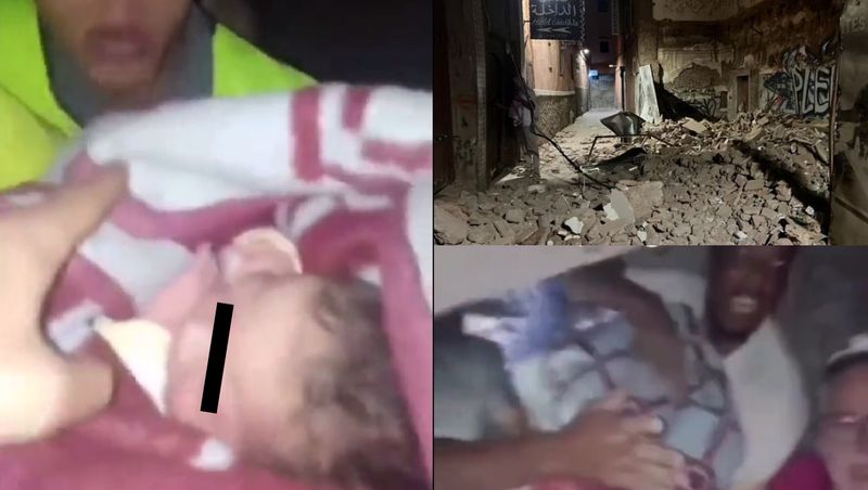 3 din 3 | VIDEO- Cutremur în Maroc 2023. Momentul emoționant în care un nou-născut este scos de sub zidurile prăbușite ale clădirilor