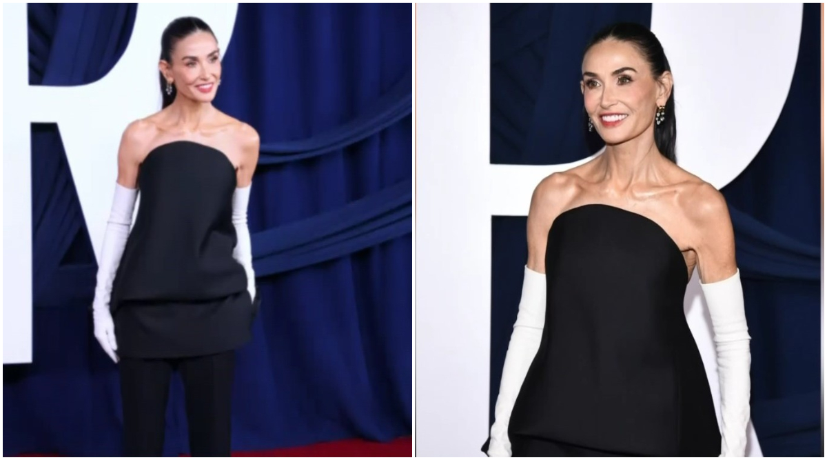Pentru această ocazie specială, Demi Moore a ales o ținută elegantă și sofisticată, care i-a pus în evidență silueta zveltă. Actrița a purtat o salopetă neagră, fără bretele și mulată pe corp, completată de o pereche de mănuși albe elegante. Părul său a fost prins într-o coadă strânsă.