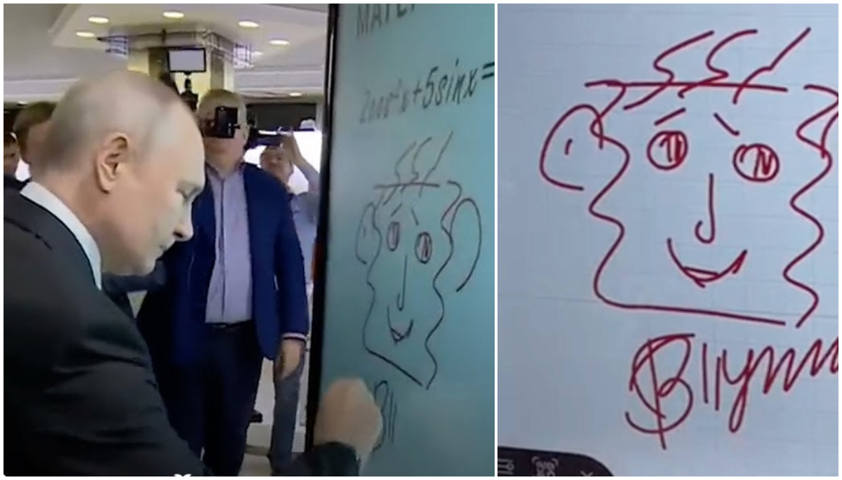 Conform Newsweek, Putin a luat markerul, a desenat o față și apoi și-a pus numele sub desen, după cum relatează agenția Tass.