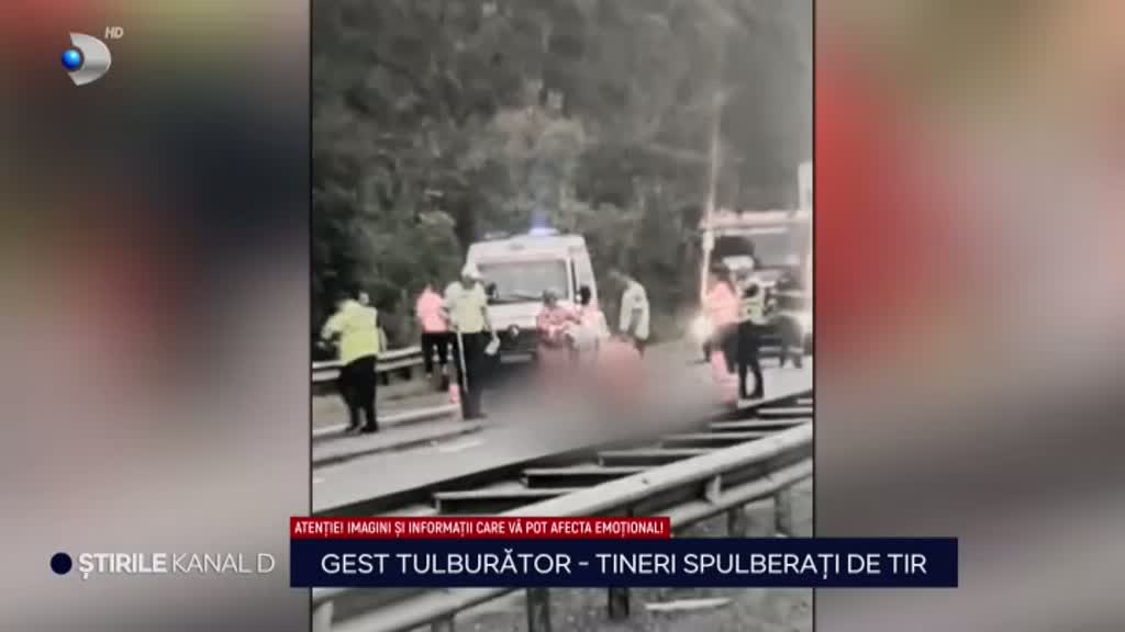 Un accident șocant ce s-a derulat pe autostrada București-Pitești i-a dus pe anchetatori pe calea unei duble sinucideri. Doi tineri - în jur la 20 ani - posibil iubiți - au apărut fulgerător în fața tirului. Erau îmbrățișați - povestește șoferul - care n-a mai putut evita impactul mortal. Atenție -sunt imagini și detalii cu un puternic impact emoțional!