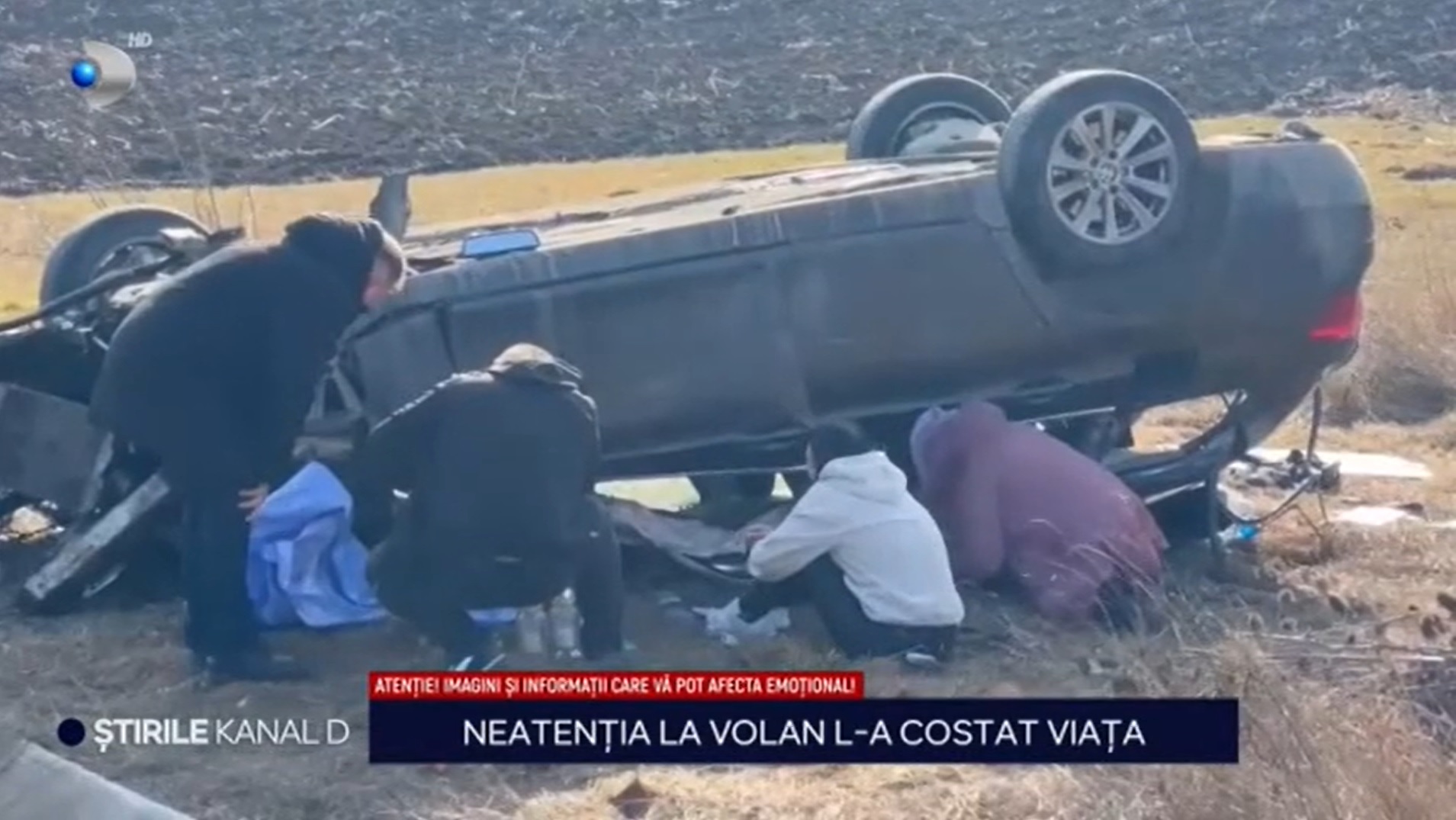 "Am auzit un zgomot puternic și când am ieșit să mă uit ce s-a întâmplat am văzut SUV-ul ăla răsturnat acolo. Aici circulă cu o viteză foarte mare și o fi uitat să ia curbă"- spune alt martor.