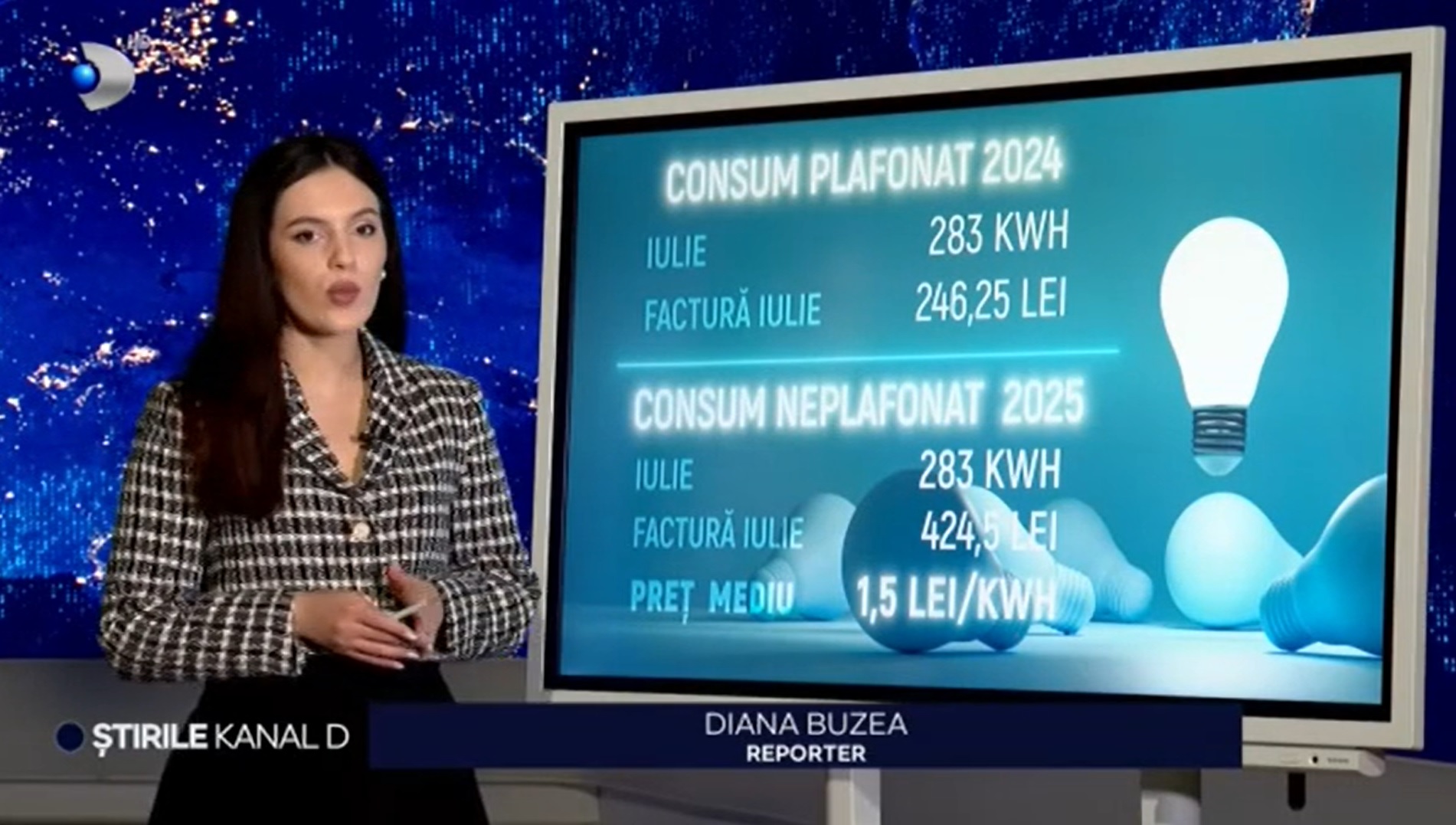 În cazul unei facturi în luna iulie a anului trecut cu un consum de două sute optzeci și trei de kilowați/oră, prețul a fost de 246 de lei plafonat, însă odată ce această măsură va fi eliminată vom plăti un preț între 1,1 și 1,6 lei pe kilowat/oră în funcție de furnizor.
