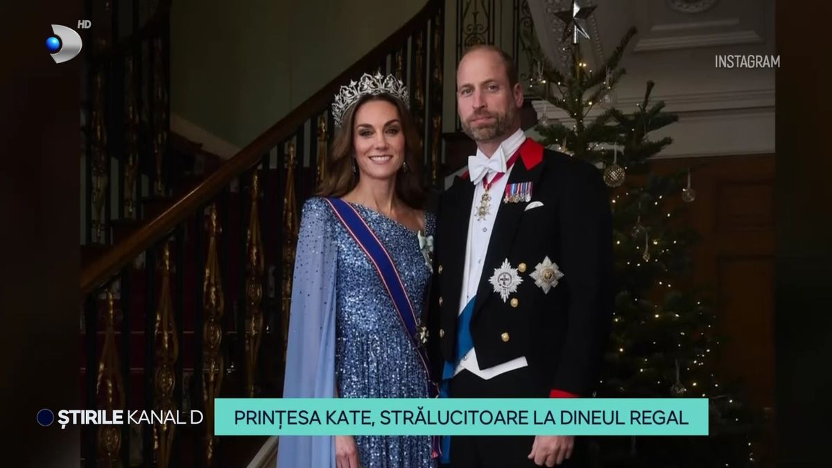 Cea mai remarcabilă apariție a serii a fost cea a prințesei Kate, care a impresionat prin eleganță și rafinament. Îmbrăcată într-o rochie albastră cu paiete, Prințesa Kate a strălucit la banchetul regal purtând o coroană încrustată cu 2600 de diamante și rubine