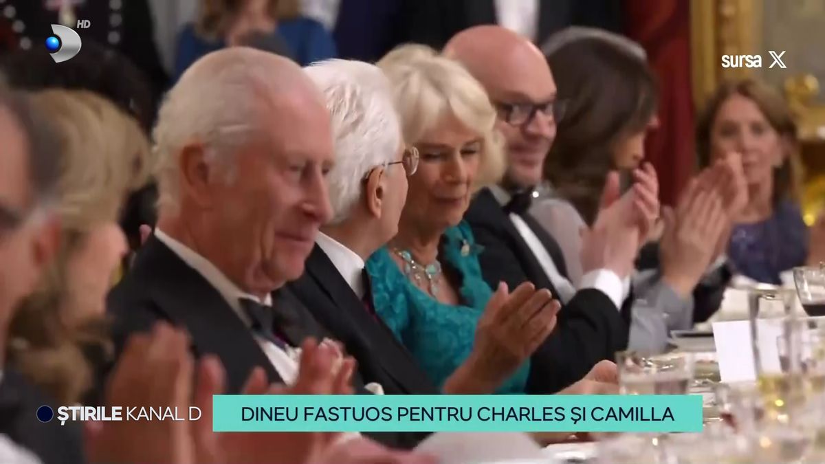 „Un dineu de stat a fost organizat la Roma în cinstea Regelui Charles și a Reginei Camilla. Președintele Italiei a organizat o cină festivă cu 150 de invitați în sala de bal a reședinței sale oficiale. Evenimentul a coincis cu aniversarea a 20 de ani de căsătorie pentru cuplul regal. Regina Camilla a ales să poarte o rochie turcoaz la seara de gală, fără a avea pe cap o coroană. În vizita lor din Italia, cei doi monarhi s-au întâlnit și cu Papa Francisc, care i-a felicitat și le-a urat „La mulți ani!”.