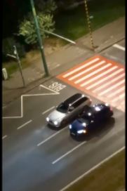Pentru doi șoferi teribiliști din Brașov, trecerea de pietoni nu este pentru trecători, ci este folosită ca linie de start pentru întreceri ilegale pe bulevard.