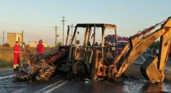 Cu viata a scapat insa muncitorul din bulodexcavator. Pompierii au reusit sa stinga rapid flacarile care cuprinsesera utilajul.
