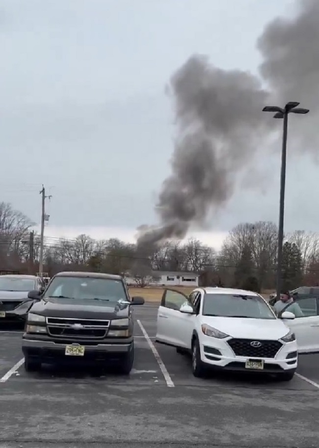 Un videoclip înfiorător care circulă pe rețelele de socializare, filmat din parcarea unui magazin Tractor Supply din Hammonton, arată un nor mare de fum negru pe cer, în timp ce spectatorii sunt șocați de accident.