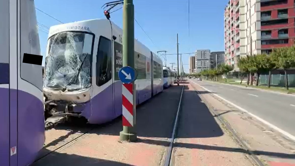 3 din 3 | VIDEO- Două tramvaie s-au ciocnit în Timișoara. O femeie a fost rănită în urma impactului