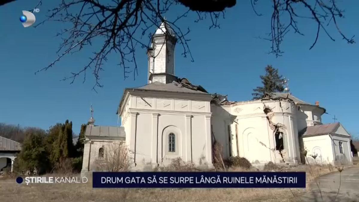 În asfaltul de pe drumul comunal au apărut zeci de cratere, iar oamenii se tem că vor rămâne fără case. Tot aici, o mănăstire de maici a fost rasă de pe fața pământului de o surpare uriașă.