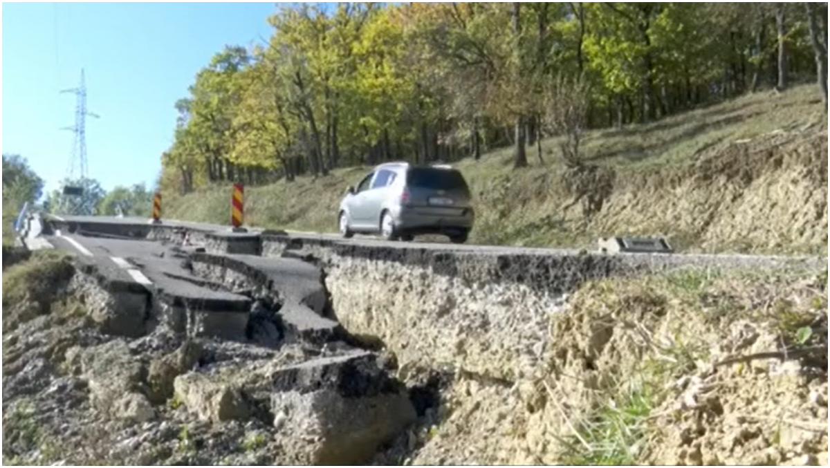 "Cu toate că zona este predispusă la alunecări de teren, atunci când a fost modernizat drumul nu s-a luat în calcul și consolidarea versantului, așa că la scurt timp șoseaua a început să se fisureze, iar în cele din urmă s-a prăbușit", spune corespundentul Kanal D Delia Săndulachi.