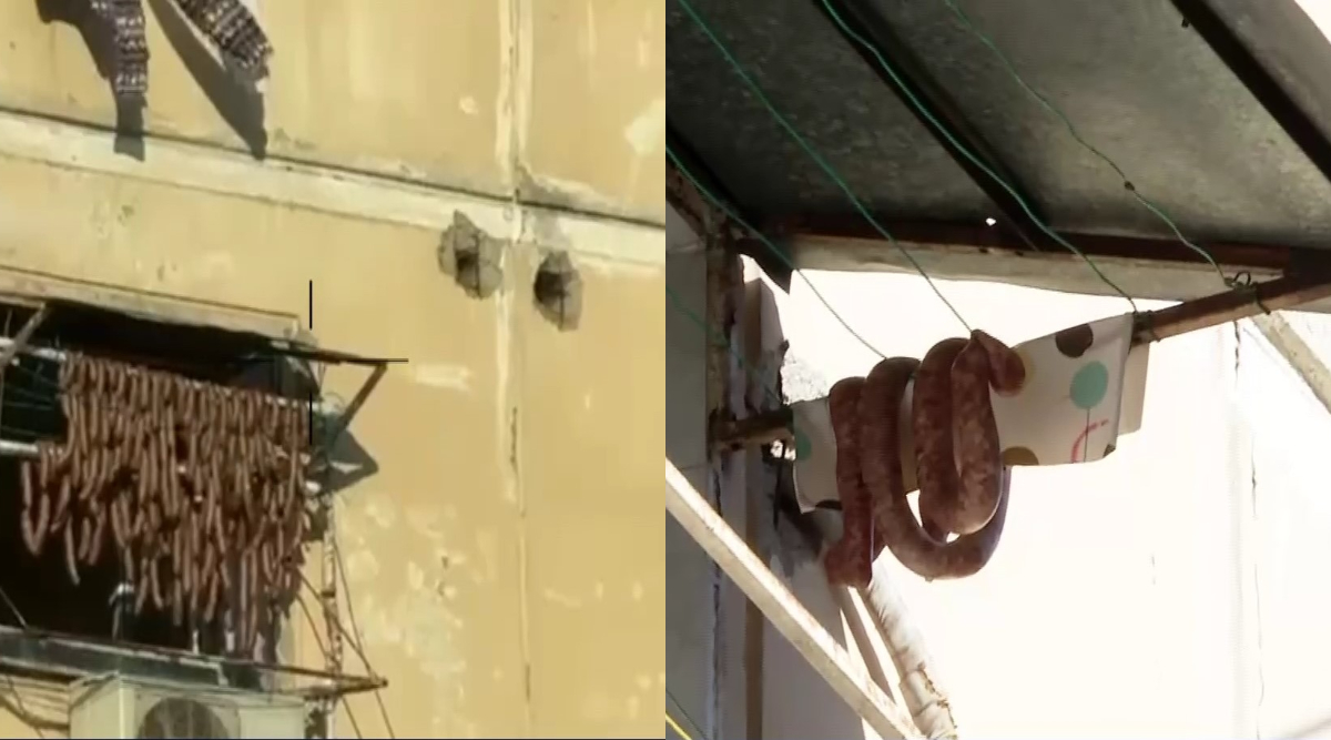Cârnații lăsați la uscat pe sârma de întins rufe de pe balcon pot cauza boli grave.