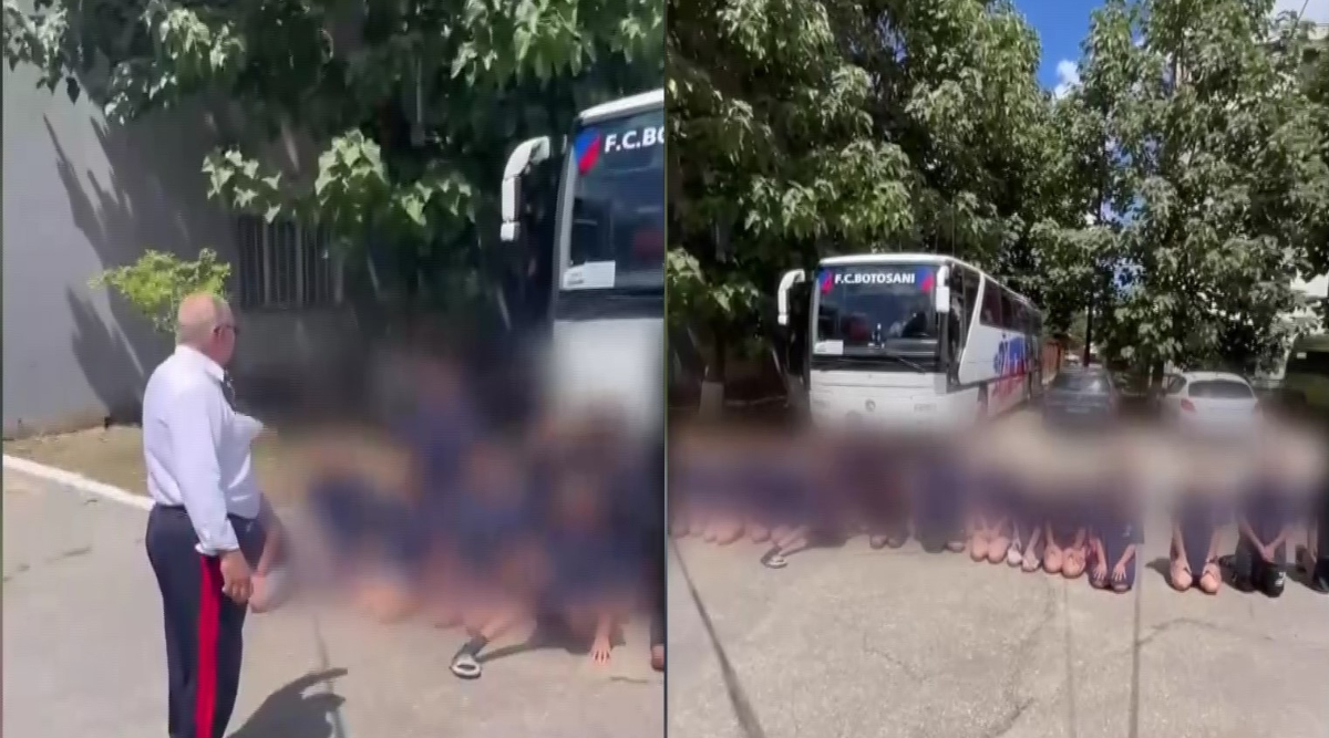 Elevii au fost puși să își ceară scuze, după ce s-au așezat în genunchi pe asfaltul fierbinte.